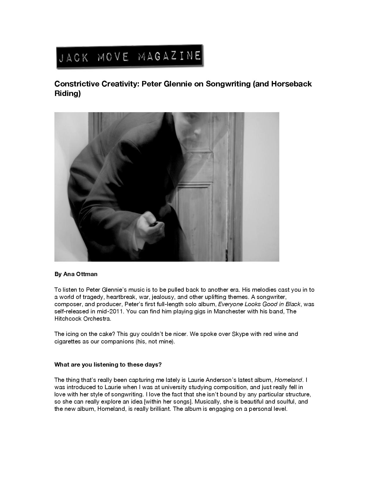 Jack Move Magazine is an online publication that curates the stories of a media-immersed culture. This was an interview of musician Peter Glennie for the March 2012 edition.